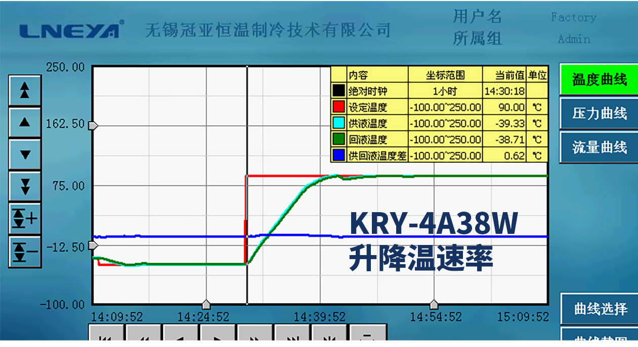 水冷機chiller測試的物件連接到一個測試平臺適配器上;部件內部通過乙二醇水溶液來冷卻和加熱測試;測試部件需要經歷一個特定的溫度變化曲線,并且記錄溫度的變化。
