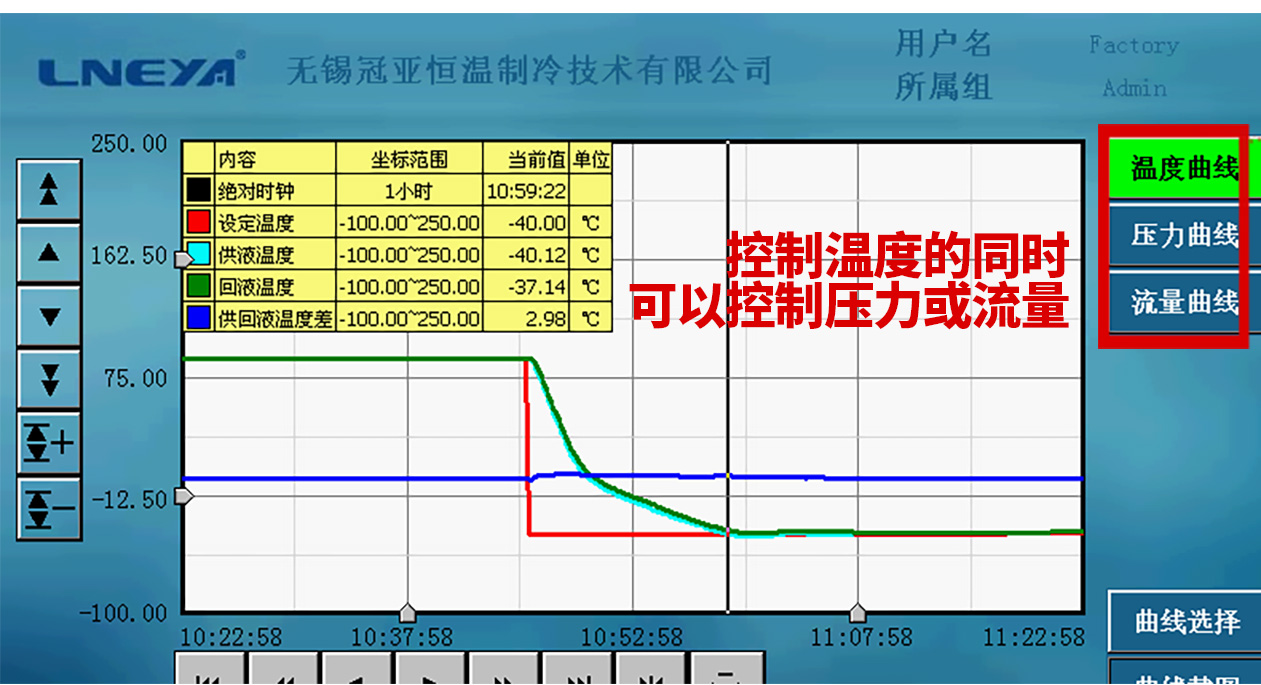 水冷機chiller測試的物件連接到一個測試平臺適配器上;部件內部通過乙二醇水溶液來冷卻和加熱測試;測試部件需要經歷一個特定的溫度變化曲線,并且記錄溫度的變化。
