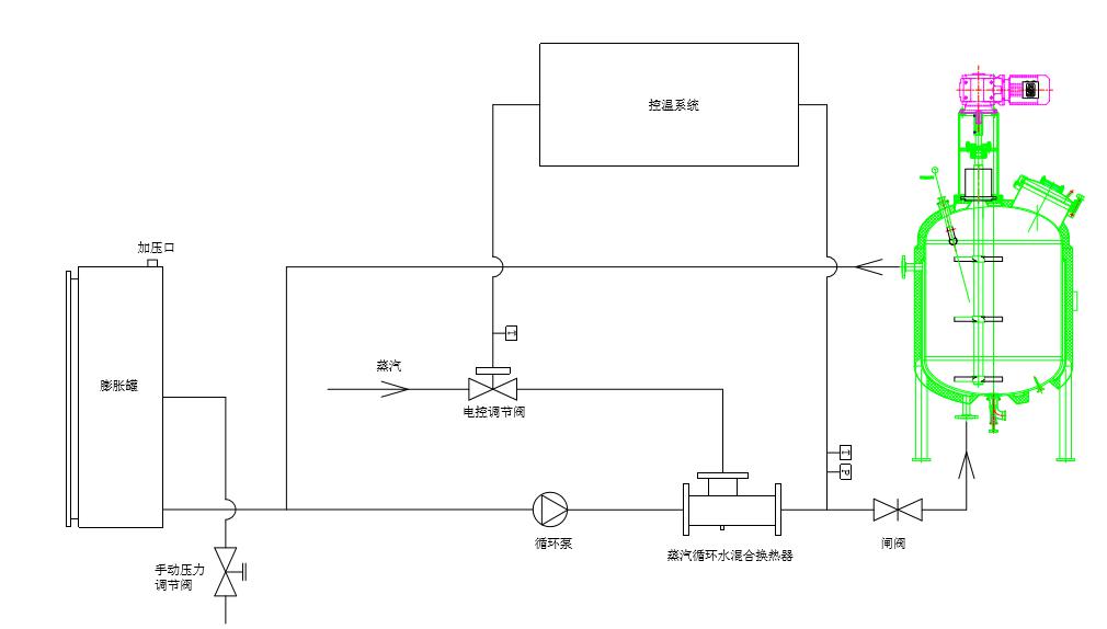 在醫藥、化工企業的工藝生產中需要采用蒸汽加熱,實現工藝保溫或對工藝進行熱水循環加熱。為滿足廣大客戶的需要,根據我們多年生產經驗,特設計由蒸汽作為熱源、常溫水作為水源的熱水控溫裝置